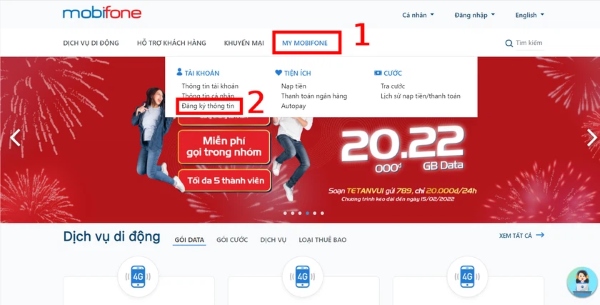 - Truy cập trang web: Mở trình duyệt và truy cập vào trang đăng ký thông tin chính chủ của MobiFone tại: MobiFone Đăng Ký Thông Tin. Chọn “Đăng ký thông tin”.