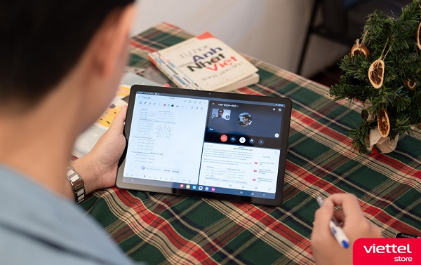 Chức năng chia ba màn hình trên Galaxy Tab A9+ thực sự là một công cụ hữu ích, nhất là khi mình tự học ở nhà. Tận dụng tính năng đa nhiệm độc đáo, mình có thể vừa take note những công thức Toán học, vừa trao đổi với bạn bè qua video call lại vừa có thể tra cứu kiến thức trên website. Nhờ đó, mình đã tiết kiệm rất nhiều thời gian cho việc tự học.