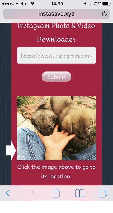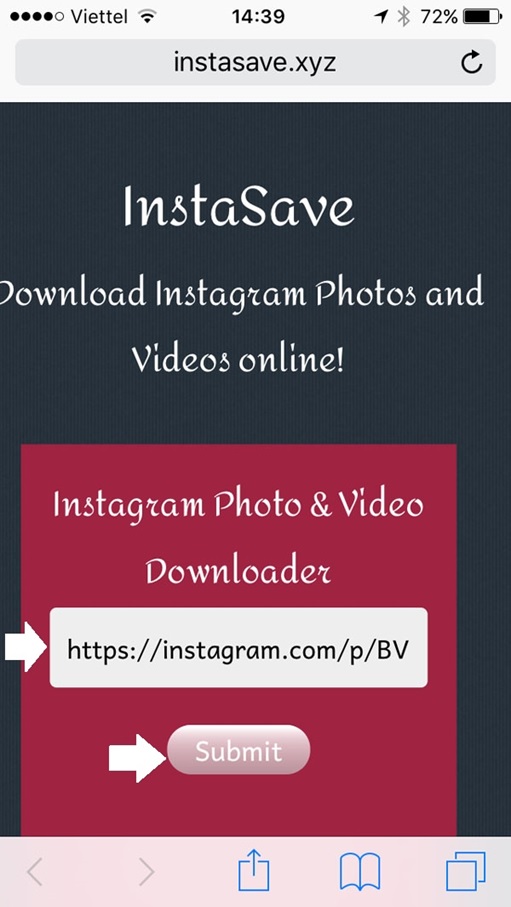– Bước 2: Mở trình duyệt trên điện thoại của bạn lên và gõ địa chỉ: instasave.xyz. Bạn dùng bất cứ trình duyệt nào cũng được. Sau khi đã truy cập được vào website trên bạn hãy paste đường dẫn URL lúc trước đã sao chép vào khung trống. Cuối cùng nhấn Submit.