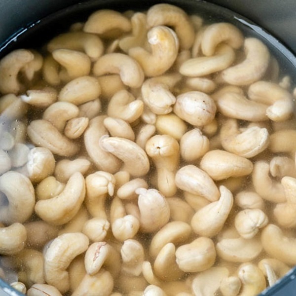 Bước 1: Hạt điều bạn đem rửa sạch và ngâm nước ấm từ 2 đến 4 tiếng. Nếu trong nhà có sẵn hạt điều đã rang bạn không cần ngâm và có thể đem ra sử dụng trực tiếp.