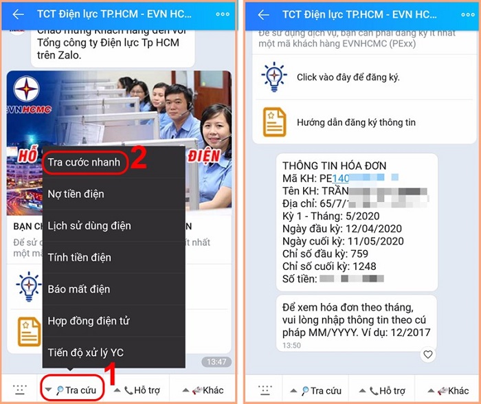 Để tra cứu tiền điện qua Zalo, bạn cần phải đăng ký thông tin rồi mới tiến hành việc tra cứu.