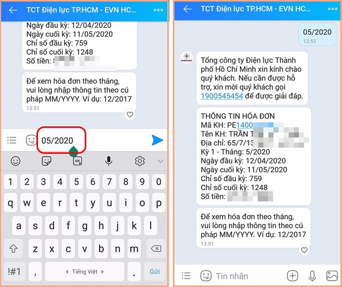 Ví dụ, nếu muốn xem hoá đơn tiền điện tháng 10 năm 2021, soạn “10/2021”.