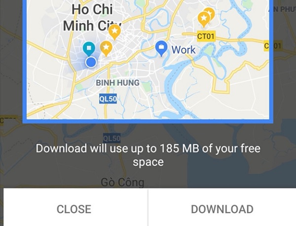 Một lưu ý đó là chúng ta có thể tải sẵn bản đồ ngoại tuyến theo khu vực mình thường xuyên di chuyển để có thể sử dụng khi cần. Chẳng hạn, nếu bạn đang ở TP.HCM thì bạn có thể tải xuống bản đồ của khu vực lân cận với phạm vi tầm 100 km.