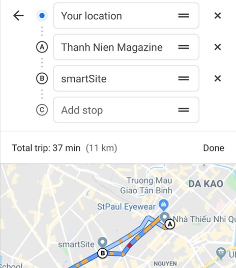 Tính năng lập lộ trình toàn bộ chuyến đi, gồm cả điểm dừng