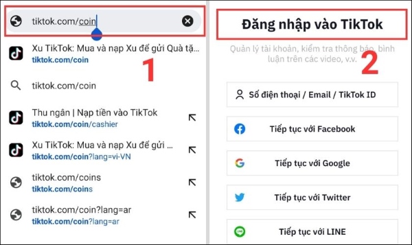 Bước 1: Truy cập trang web TikTok.com/coin > Đăng nhập TikTok.