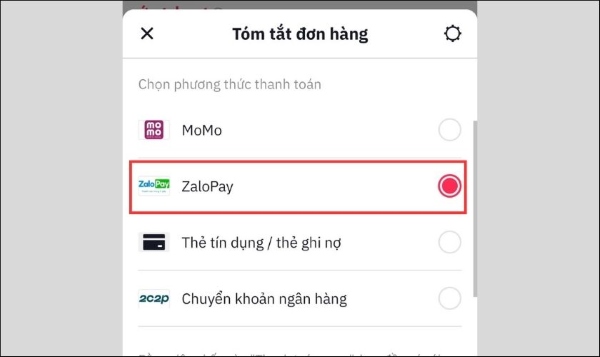 Bước 3: Tại đây, nhấn chọn phương thức thanh toán là Zalo Pay. Ngay sau đó màn hình sẽ chuyển tiếp qua ứng dụng Zalo và vào Zalo Pay.