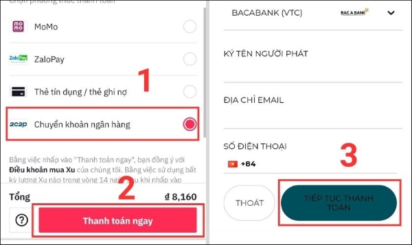 Ngoài 3 cách trên, người dùng cũng có thể mua xu TikTok bằng cách chuyển khoản ngân hàng như sau: