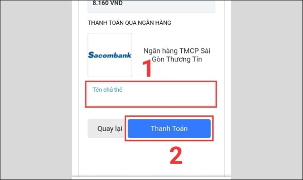 Bước 4: Nhập tên chủ thẻ, cuối cùng nhấn Thanh toán để hoàn tất.