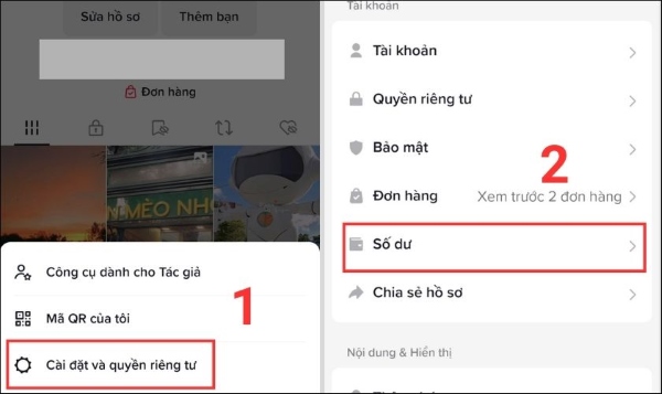 Bước 2: Nhấn chọn mục Cài đặt và quyền riêng tư > chọn Số dư.