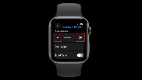 Bước 2: Nhấn vào biểu tượng mặt trời bên trái để giảm độ sáng màn hình Apple Watch xuống.