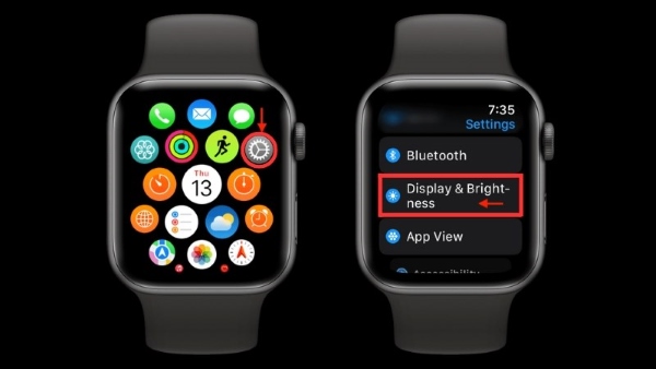 Bước 1: Trên Apple Watch, bạn mở Settings (Cài đặt) > chọn vào Display & Brightness (Màn hình và Độ sáng).
