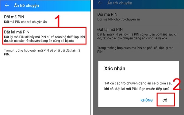 Bước 3: Chọn Đặt lại mã PIN và nhấn Có.