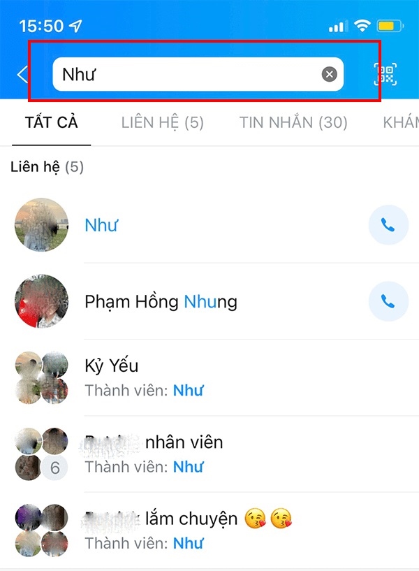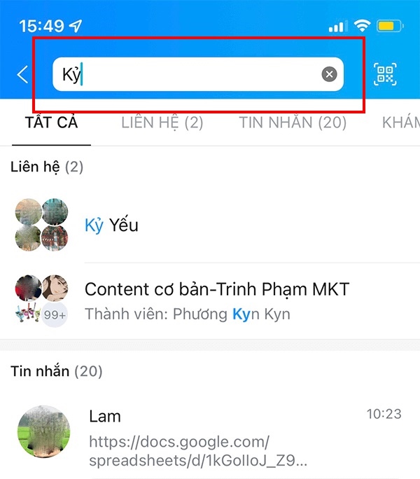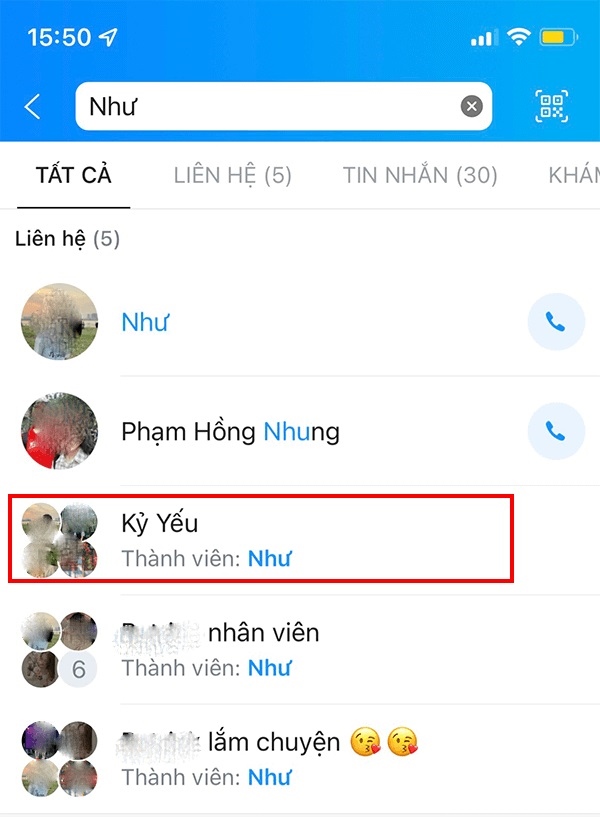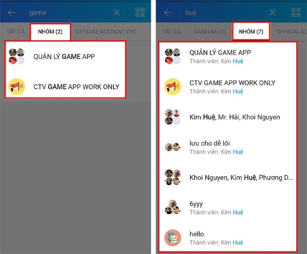 Cách 2: Cách tìm nhóm chat trên Zalo thông qua nhập tên của thành viên trong nhóm