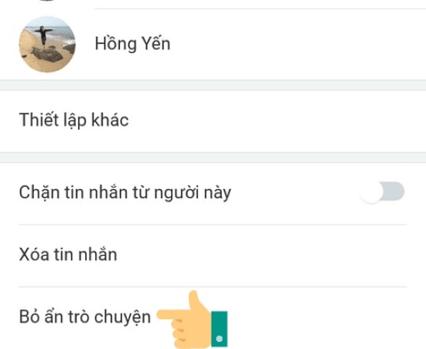 Bước 2: Bạn nhấn tiếp vào mục Tin nhắn và chọn Ẩn trò chuyện.