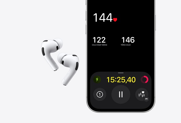 Lần đầu tiên, AirPods Pro 3 được trang bị cảm biến nhịp tim, đồng bộ trực tiếp với ứng dụng Fitness trên iPhone, hỗ trợ hơn 50 bài tập và cung cấp dữ liệu sức khỏe tức thì qua Apple Fitness+.