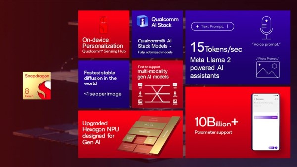 Một điểm đáng chú ý mà con chip Snapdragon 8 Gen 3 mang lại đó là tích hợp công nghệ AI thông minh vào toàn bộ hệ thống để mang lại hiệu suất tối đa và trải nghiệm vượt trội cho người dùng. Các tiêu chuẩn Qualcomm Artificial Intelligence (AI) Engine, Qualcomm Sensing Hub hay Qualcomm Fast Connect 7800, và nhiều công nghệ hiện đại khác sẽ tạo nên một hệ sinh thái hoàn hảo cho việc sử dụng thuật toán AI.