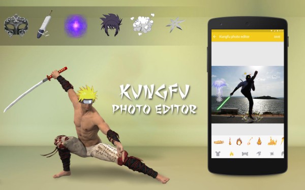 Kungfu Photo Editor là một công cụ chụp ảnh theo chủ đề cổ trang võ thuật được nhiều người ưa chuộng, giúp bạn thêm các hiệu ứng hành động ấn tượng giống trong các bộ phim võ hiệp như phóng chưởng, bay lượn hay thi triển khinh công. Bạn có thể dễ dàng tạo nên bức ảnh sống động chỉ với vài thao tác đơn giản.