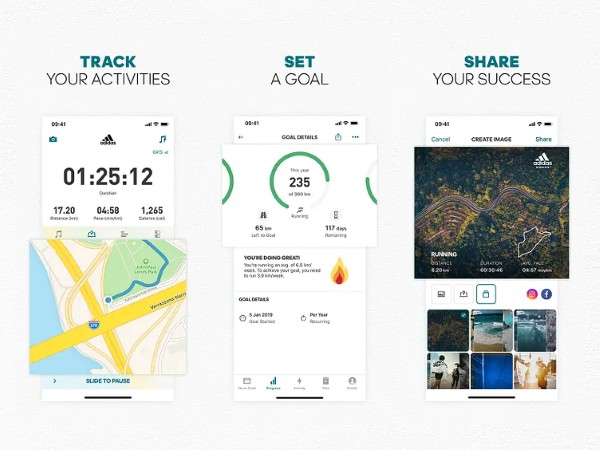 adidas Running App by Runtastic là ứng dụng phổ biến giúp theo dõi nhiều hoạt động thể thao như chạy bộ, đạp xe, đi bộ, leo núi,… Ứng dụng cung cấp thông tin chi tiết về quãng đường, thời gian, tốc độ, độ cao và năng lượng tiêu hao. Đây là một công cụ miễn phí, có độ chính xác cao và được nhiều người tin dùng.
