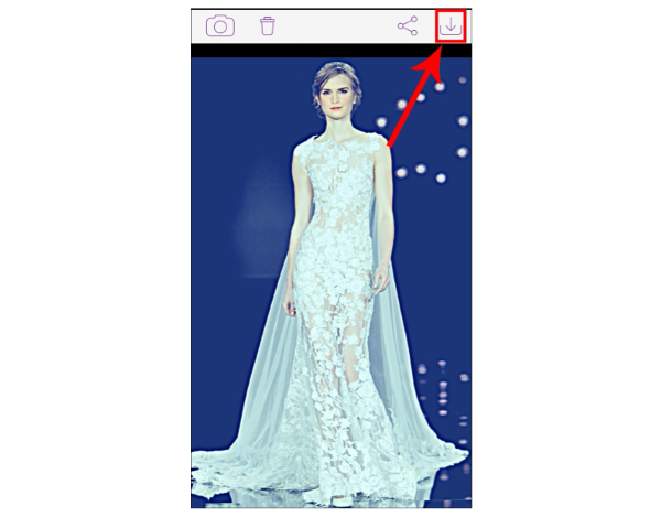 Ngay lập tức, phần khuôn mặt trong mẫu váy sẽ được thay thế bằng khuôn mặt trong ảnh bạn chọn. Sử dụng một ngón tay để điều chỉnh vị trí, hoặc dùng hai ngón để phóng to hay thu nhỏ khuôn mặt sao cho trùng khớp với mẫu.