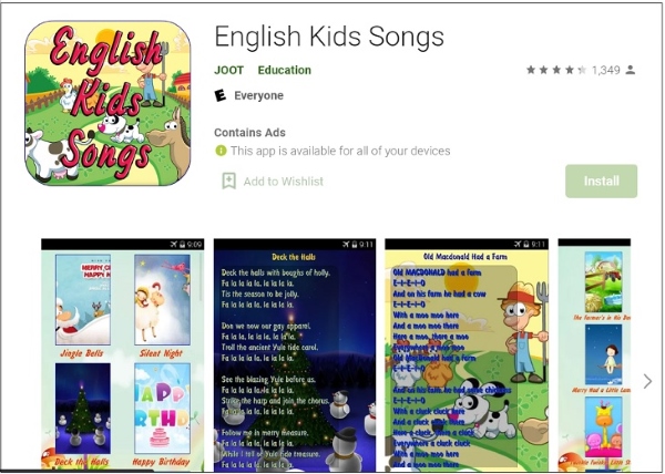 English Kids Songs là phần mềm học tiếng Anh thông qua những bài hát dễ thương, quen thuộc với lứa tuổi trẻ em, giúp bé học ngôn ngữ một cách tự nhiên nhất. Ứng dụng phù hợp với trẻ ở nhiều lứa tuổi, và rất được yêu thích vì có nhiều bản nhạc đáng yêu, ngộ nghĩnh. Đặc biệt app có thể hoạt động cả khi không có mạng và hoàn toàn miễn phí, dễ dàng sử dụng mọi lúc, mọi nơi.