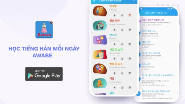 Ứng dụng học tiếng Hàn Awabe mỗi ngày với các bài học được chia làm 4 cấp độ từ cơ bản đến trung cấp. Người học có thể dễ dàng tiếp cận và học tập một ngôn ngữ mới mà không cần mất quá nhiều thời gian để làm quen hay chi phí đắt đỏ để đăng ký các khóa học.