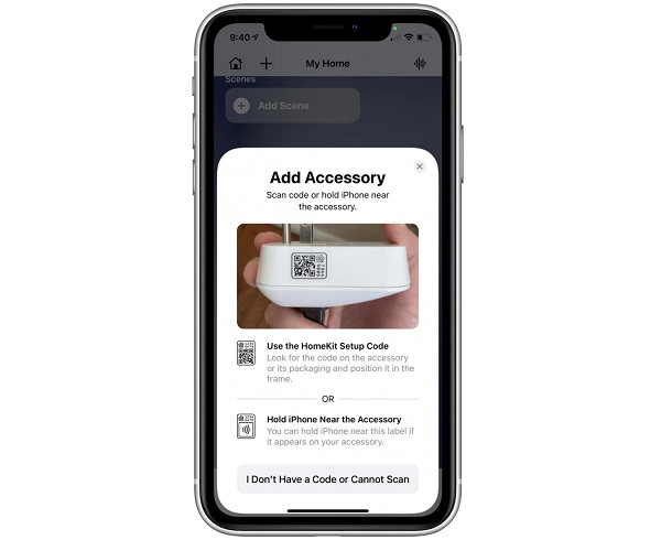 Tiếp theo, bạn hãy sử dụng camera của thiết bị để quét mã Homekit trên sản phẩm hay bao bì, hoặc nhập thủ công mã 8 chữ số nếu không có mã QR.