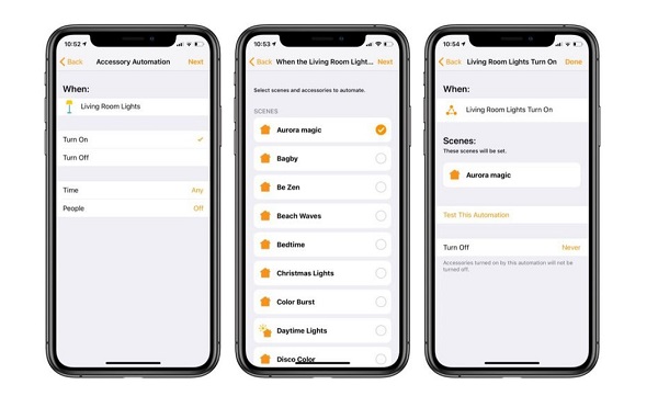 Lựa chọn những thiết bị muốn bao gồm trong ngữ cảnh và thiết lập trạng thái mong muốn cho từng thiết bị, chẳng hạn bật đèn phòng ngủ với độ sáng 40%.