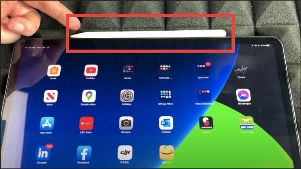 Bước 1: Đầu tiên hãy gắn Apple Pencil vào với đầu nối từ tính ở cạnh bên phải của chiếc iPad.