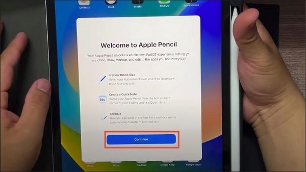 Bước 2: Lúc này trên màn hình iPad sẽ hiển thị lên thông tin kết nối của Apple Pencil 2, người dùng hãy nhấn vào Continue là hoàn thành xong việc kết nối.