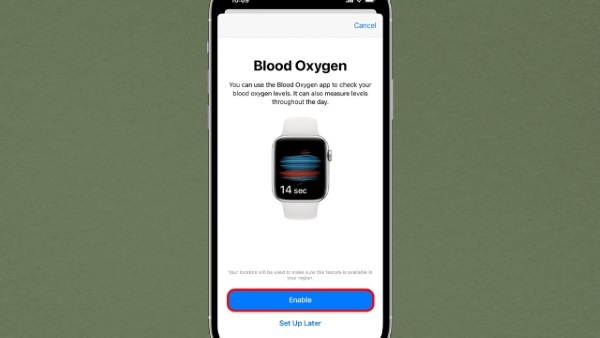Chuẩn bị thực hiện tính năng đo nồng độ Oxy trong máu