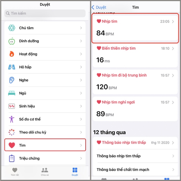 Xem lịch sử đo nhịp tim trên trên iPhone: