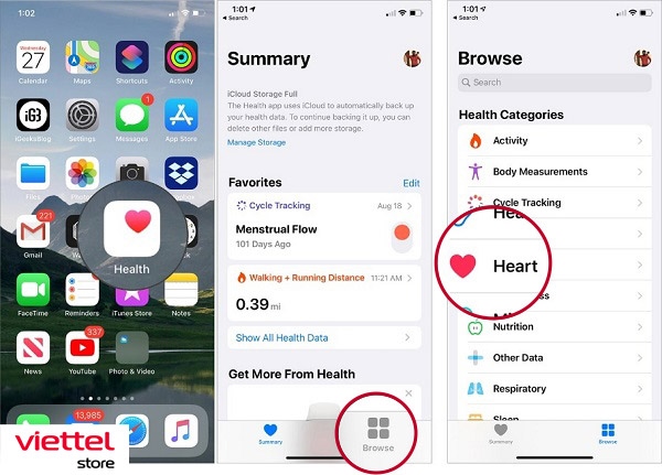 Ngoài cách xem lịch sử đo nhịp tim trên đồng hồ Apple Watch, người dùng cũng có thể xem thống kê lịch sử kết quả đo trên điện thoại iPhone đã được liên kết và đồng bộ hóa như sau: