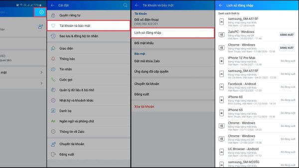 8. Kiểm tra và đăng xuất khỏi thiết bị lạ