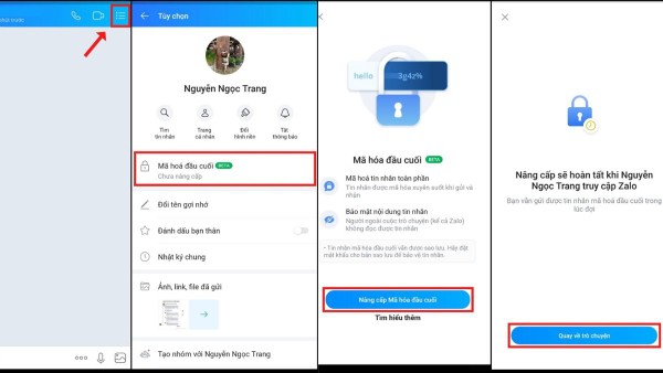 Để kích hoạt và nâng cấp mã hóa đầu cuối trên Zalo, bạn thực hiện theo các bước sau:
