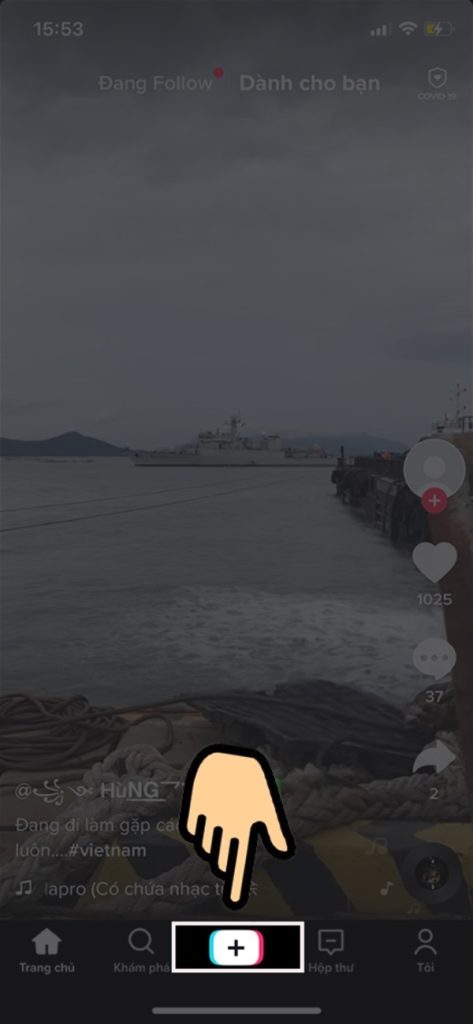 Bước 1: Chọn khởi chạy ứng dụng và ấn vào biểu tượng có hình dấu cộng (+) ở vị trí phía dưới màn hình để có thể bắt đầu sử dụng tính năng TikTok LIVE.