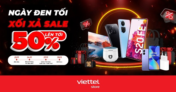 Hòa chung không khí đón chờ tuần lễ mua sắm Black Friday, Viettel Store triển khai chương trình “Ngày đen tối – Xối xả sale tới 50%” áp dụng với rất nhiều các sản phẩm smartphone, phụ kiện, gia dụng chính hãng.