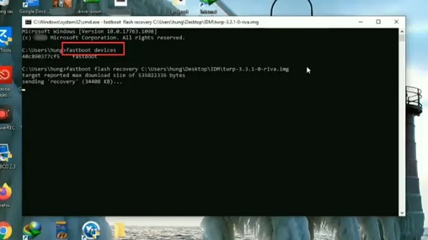 Bước 4: Gõ lệnh fastboot devices để kiểm tra kết nối. Nếu hiển thị mã thiết bị, bạn có thể chọn 1 trong 2 cách sau: