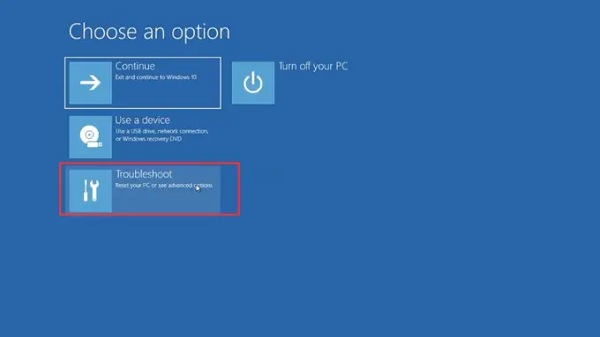 Bước 2: Lần khởi động thứ 3, hệ thống sẽ tự động vào Windows Recovery Environment > Lúc này, hãy chọn Troubleshoot.