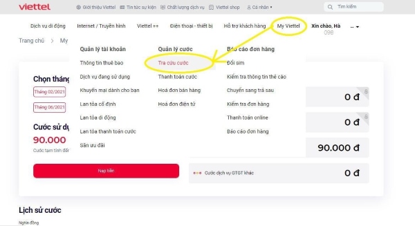Cách 3: Kiểm tra gói cước Viettel đang sử dụng trên website