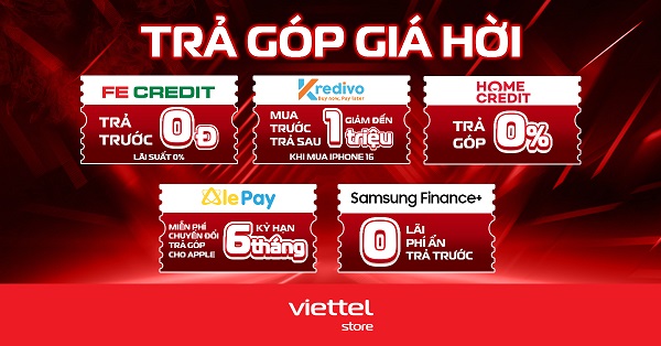 Trả góp giá hời là một trong các chương trình ưu đãi hấp dẫn khi bạn mua các sản phẩm điện thoại, máy tính bảng, đồng hồ thông minh, gia dụng,… tại Viettel Store.