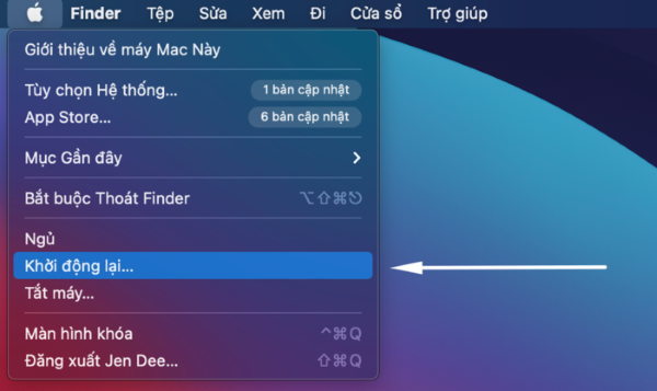 Cách 2: Khởi động lại máy tính bằng cách chọn thanh Khởi động lại trên menu chính.