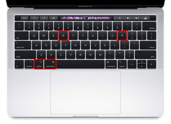 - Khởi động lại máy tính và nhấn tổ hợp phím Command + Option + R + P.