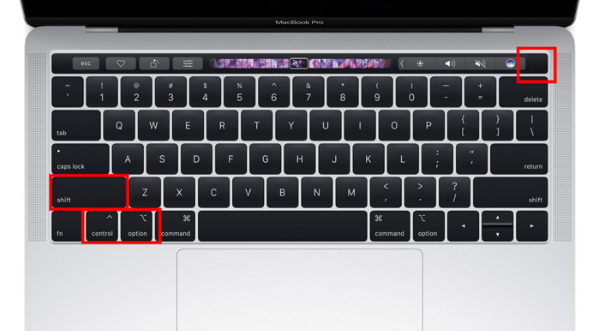 Bước 2: Nhấn đồng thời nút nguồn và tổ hợp phím Option + Shift + Control trong khoảng 20 giây.