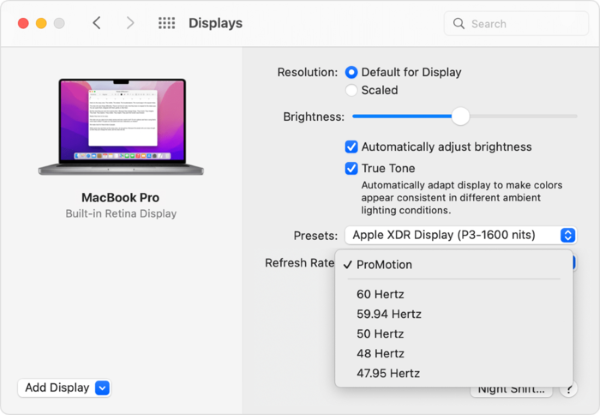 Cách 1: Thay đổi tần số quét màn hình MacBook Pro 2017: