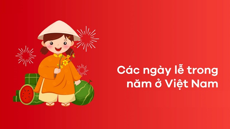 Vào những ngày nghỉ trong năm, mọi người thường hội họp, gặp gỡ để cùng nhau trò chuyện, ăn uống hay có nhiều hoạt động ý nghĩa khác. Đây cũng là dịp mọi người về thăm gia đình, đi du lịch hay các cặp đôi hẹn hò, đi chơi. Sau những ngày làm việc mệt mỏi, các ngày lễ lớn là lúc để bạn thư giãn và khôi phục lại năng lượng cho bản thân. Khác với nhiều nước trên thế giới, Việt Nam có nhiều ngày nghỉ lễ hơn bởi có 2 ngày lễ phân theo lịch Dương và lịch m. Hãy cùng tìm hiểu chi tiết các ngày lễ dưới đây.