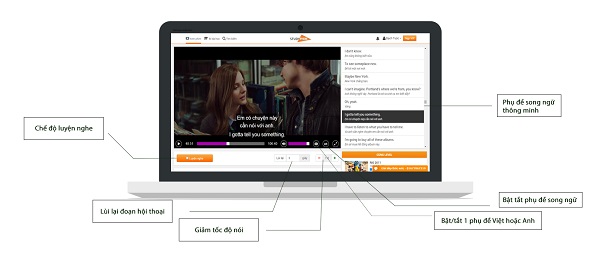Ngoài ra, thông qua hệ thống nhận dạng giọng nói người dùng còn có thể thực hành luyện phát âm, thực hành luyện nói qua hệ thống ghi âm và đặc biệt hơn còn cho phép bạn hóa thân vào các nhân vật trong phim.