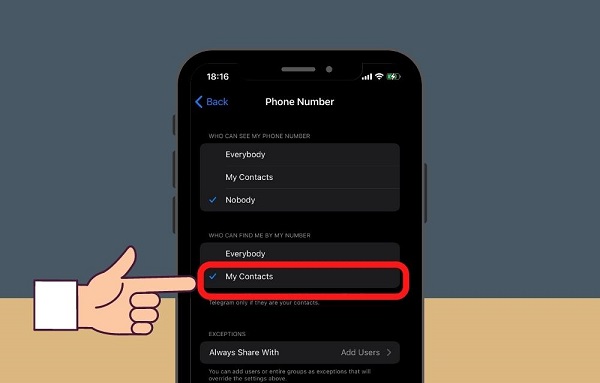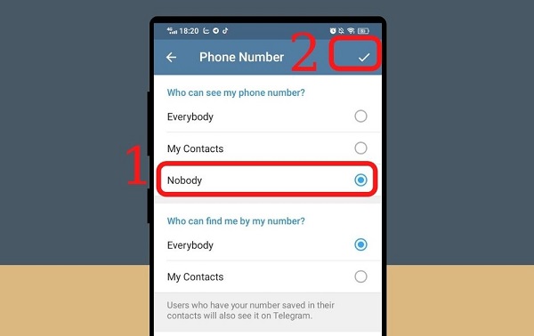 Tương tự như phần trên thì người dùng cũng có thể nhấn vào mục My Contacts ở phần Who can find me by my number để những người ở trong danh bạ có thể nhìn được số điện thoại của bạn khi họ sử dụng ứng dụng Telegram nhé.