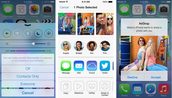 Bước 3: Nhấn vào AirDrop và thiết lập iPhone của bạn dưới 2 chế độ Contacts Only (1 số liên lạc nhất định) or Everyone (Mọi người)