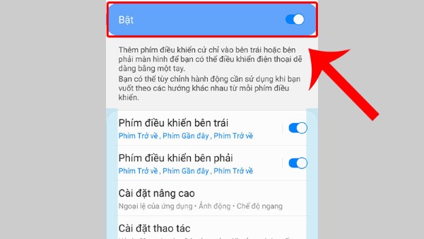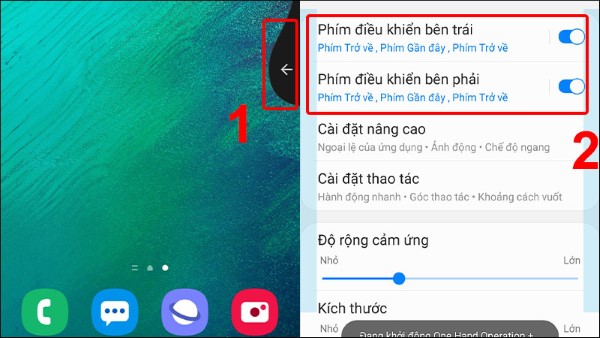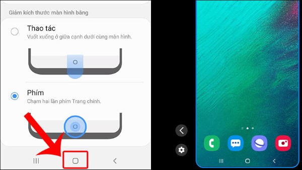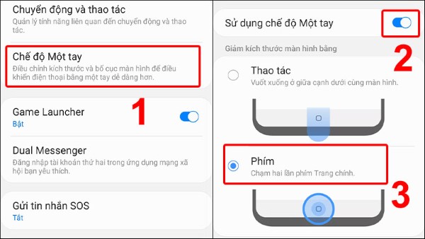 Bước 2: Ấn vào Chế độ Một tay > Kích hoạt chế độ sử dụng một tay > Chọn cách kích hoạt với phím Trang chính.