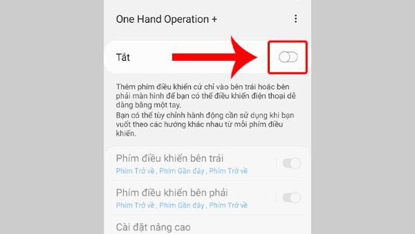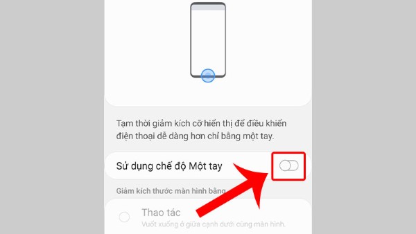 Bước 4: Để tắt Chế độ Một tay, bạn gạt công tắc chuyển đổi trạng thái sang vị trí bên trái là xong.